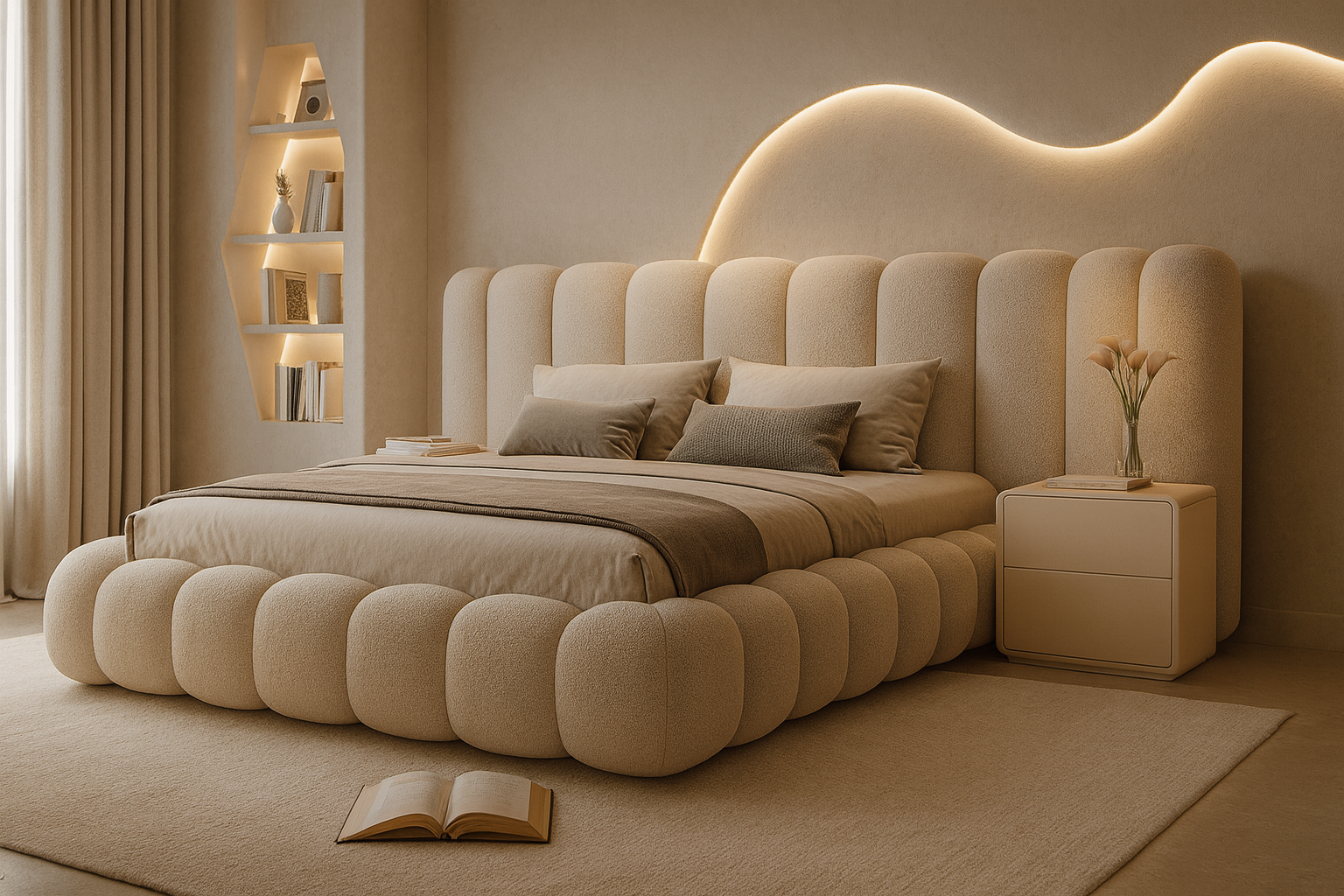 This lavish velvet bed offers unparalleled comfort and elegance, with its soft, plush upholstery inviting you to sink in and relax. Designed to blend luxury with serenity, Silken Haven turns your bedroom into a sanctuary of sophistication, making every night feel indulgent and restful.